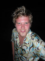Anyhow, going back to this party... I had an amazing time. It was a "pool party," but when I was the first loser to arrive with a bathing suit I realized that "pool party" meant party by the pool. I guess I take some things too literally? I was a bit taken back by this but regardless, I did make it into the water after Mike Robbins, the guy pictured to the left (he looks like a young Gary Busey) got in. Some girl was trying to coerce Mike to get in because she wanted to get in (me and Brian thought she wanted him, really), but Mike didn't have any boxers on underneath his jeans so he was walking around asking people for their underwear so he could borrow them. I told Mike that if he jumped in with his jeans I'd follow lead. Mike is one of my dear friends who's honest and sincere about his ideals and emotions. He does what he feels right, even if it's just at the moment--I admire him for being so unique and disregarding of what people think. But enough of an ego boost for Mike, I've made some really good friends here at college and I'm so happy about that and being that last nights party was full of them made it all the better. So anyways, in addition to the free booze and pool, there was a dj, a strobelight, a projection screen and Veronica fire danced--I included video of that. Being that everyone was either really drunk or high, made the anxiety level amongst the crowd thick and unrelenting, especially when Veronica started twirling the fire around Hannah J. and Petty, the birthday celebrants.